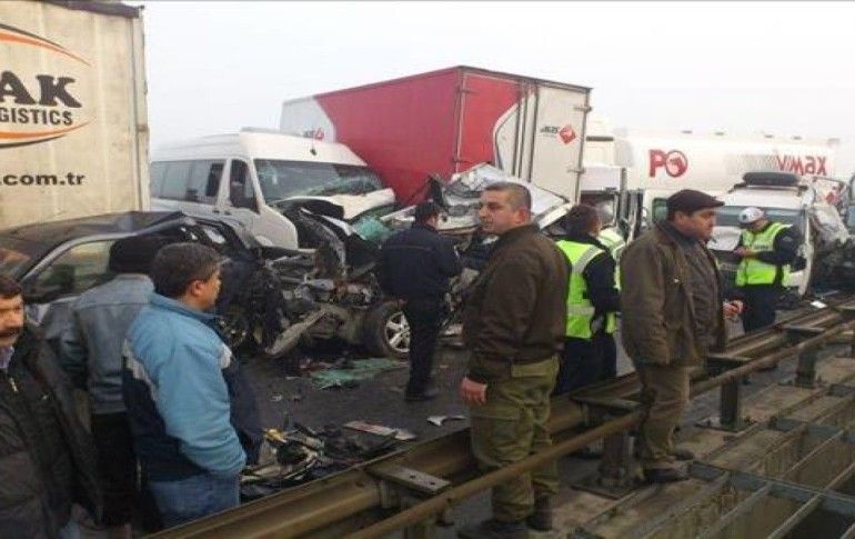 TEM Otoyolu Hadımköy Çatalca arasında bulunan Karaağaç mevkiinde sis ve buzlanma nedeniyle meydana gelen ve onlarca aracın karıştığı zincirleme trafik kazasında ilk belirlemelere göre 1 kişi öldü, 20 kişi de yaralandı.