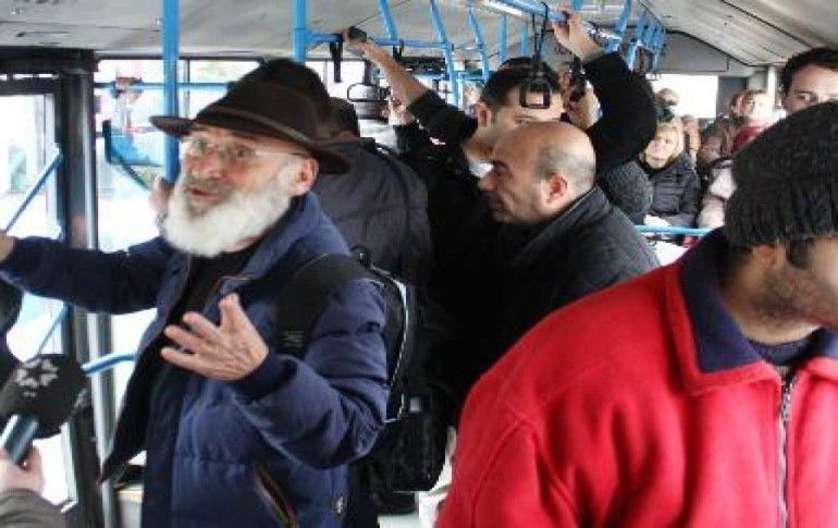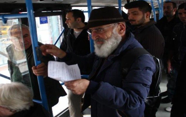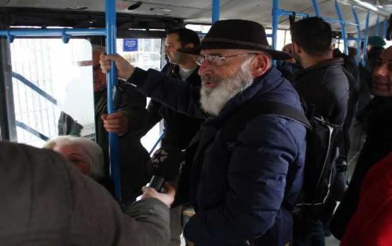 Muhteşem Yüzyıl'da Şeyhülislam Ebu Suud Efendi'yi canlandıran usta sanatçı Tuncel Kurtiz halk otobüsünde görüntülendi.