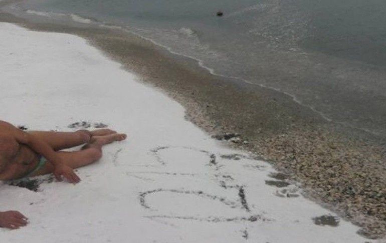Soğuk havaya aldırış etmeyen bir vatandaş kar yağışı altında denize girdi.