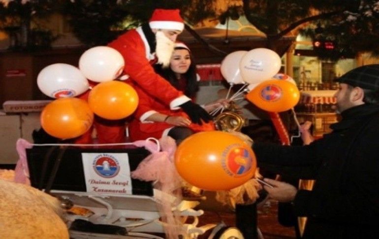 Maltepe'de yılbaşı kutlamaları kapsamında Noel Anne ve Noel Baba faytonla vatandaşlara hediye dağıttı.