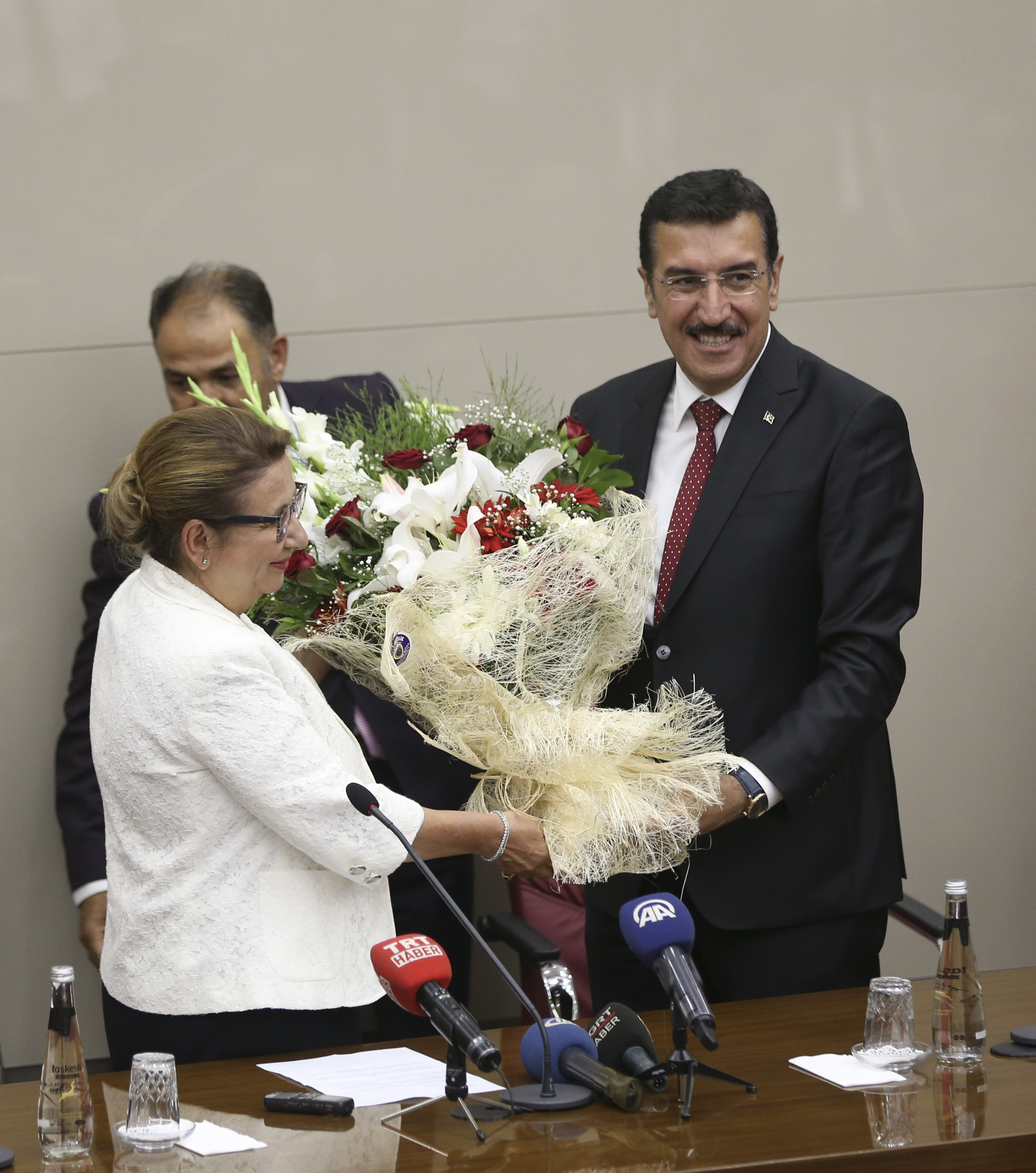 Pekcan, Ekonomi Bakanlığında gerçekleştirilen devir teslim töreninin ardından, Gümrük ve Ticaret Bakanlığında düzenlenen törene katıldı.