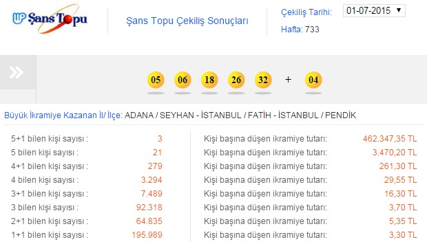 Şans Topu haftanın çarşamba günü içinde yeni bir heyecan dalgası oluşturmaya devam ediyor. 1 Temmuz tarihli çekiliş için gözler yine Milli Piyango İdaresi'ne çevrilmiş durumda. Şans Topu’nun 733’nci hafta çekilişi 1 Temmuz Çarşamba günü gerçekleşti.