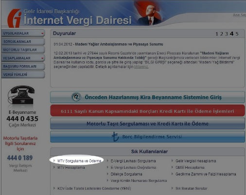 Birinci Adım: Açılan sayfadan aşağıdaki resimde görülen MTV Sorgulama ve Ödeme linkine tıklayınız.