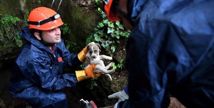 Öğretmenevleri Mahallesi'nde bulunan bir çukurda yavru köpeğin mahsur kaldığı ihbarını alan ekipler, hemen harekete geçti.