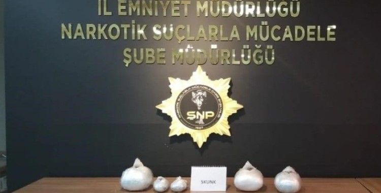 Edinilen bilgiye göre, Şanlıurfa İl Emniyet Müdürlüğü Narkotik Suçlarla Mücadele Şube Müdürlüğü ekipleri içerisinde uyuşturucu madde olduğu belirlenen bir aracı takibe aldı. Operasyonla durdurulan araçta arama yapan ekipler, 1 paket halinde 2 kilo 800 gram skunk maddesi, 1 adet silah ve 18 adet fişek ele geçirdi.