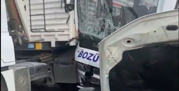 Kazada 3 otomobil, bir kamyon ve yolcu minibüsü çarpıştı.