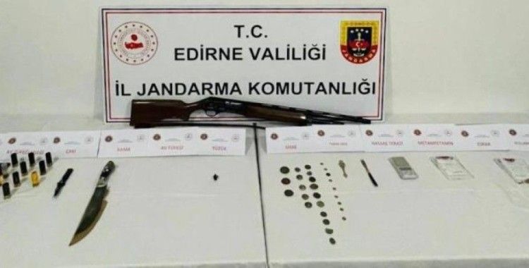Uyuşturucu ticareti yapıldığı iddiası üzerine harekete geçen İl Jandarma Komutanlığı ekipleri, T.A.'nın evine operasyon düzenledi. Operasyon sonucu evde yapılan aramada 1 adet hassas terazi, 1 adet çakı, 1 adet kama, 2 adet cep telefonu, 7 adet telefon parçası, 1 adet tablet, 1 adet otomatik av tüfeği, 10 adet 12 mm çapında av tüfeği fişeği, 1 gram metamfetamin, 1 gram esrar, 2 adet tarihi eser olduğu değerlendirilen çatal, 27 adet sikke, 1 adet tarih eser olduğu değerlendirilen yüzük, 6 adet uyuşturucu kullanma aparatı 1 adet av tüfeği kütüklüğü, 1 adet 7,65 mm çapında tabanca fişeği ele geçirildi.