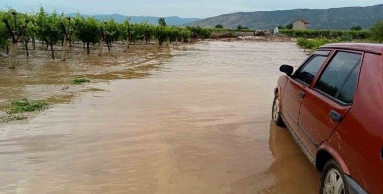 Sarıgöl’ün Şeyhdavutlar ve Güneydamları Mahallesi’ndeki Çınarlı Dere ile Denizli’nin Buldan ilçesine bağlı Eziler, Karaköy ve Boğazçiftliği derelerinin birleştiği Kocaçay taşarak sulama kanalına doldu ve ardından üzüm bağlarını su bastı.