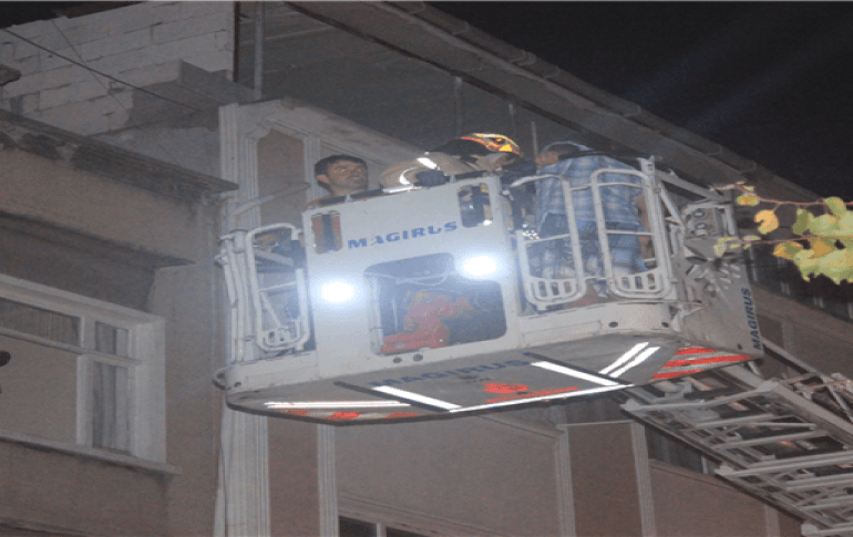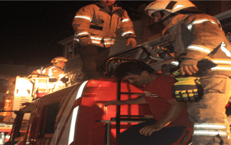 da olduğu çatıya çıkarak mahsur kalan 7 vatandaşı kurtarırken, dumandan etkilenen