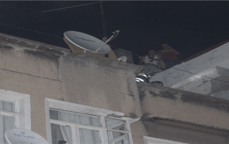 kaçarak çatıya çıktı.