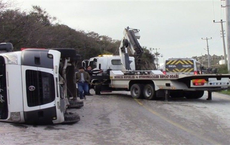 Sabahın erken saatlerinde ilçedeki özel bir okula öğrenci taşıyan Gürkan Çıplak Yönetimindeki 48 S 1283 plakalı minibüs, Bağla - Gürece yolunda seyrettiği sırada yoldaki buzlanma sebebiyle direksiyon hakimiyetini kaybetti. Yol kenarındaki trafik tabelasını devirerek şarampole giren minibüs devrildi.