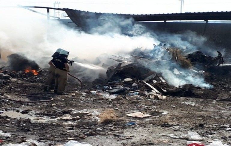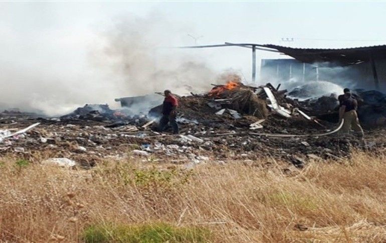 İZMİR / İHA - Çeşme'de, geri dönüşüm atıklarını toplayan bir firmaya ait depoda yangın çıktı. Ovacık Mahallesi yolu üzerindeki depoda çıkan yangın korku dolu anlar yaşattı.