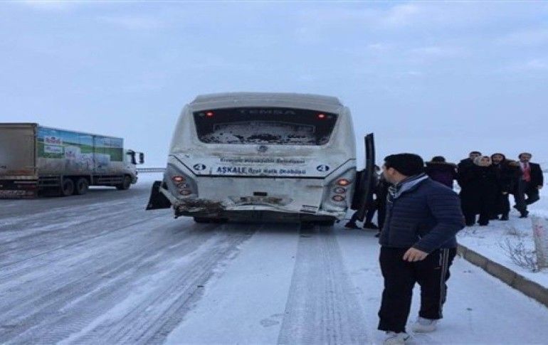 Edinilen bilgilere göre, Aşkale’nin Çayköy mevkiinde seyir halinde olan Fatih Akbulut önüne çıkan köpeğe çarpmamak için ani fren yapması sonucu, Hüseyin Uruk idaresindeki Aşkale Özel Halk Otobüsüne arkadan çarptı.