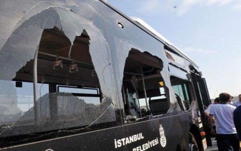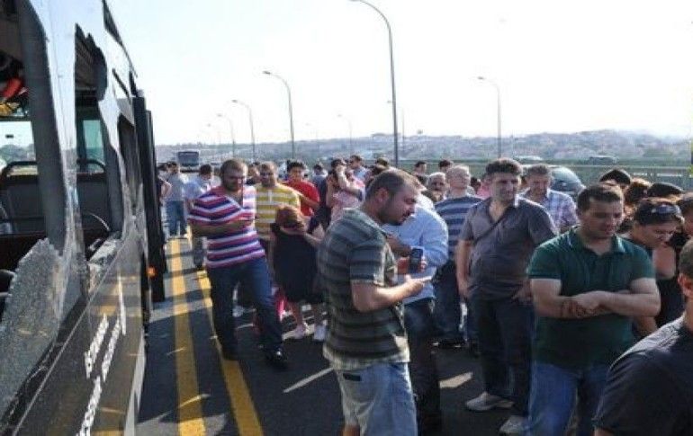 Haliç Köprüsünde iki metrobüsün çarpışması sonucu araçların camlarının patlamasıyla 5 yolcu yaralandı