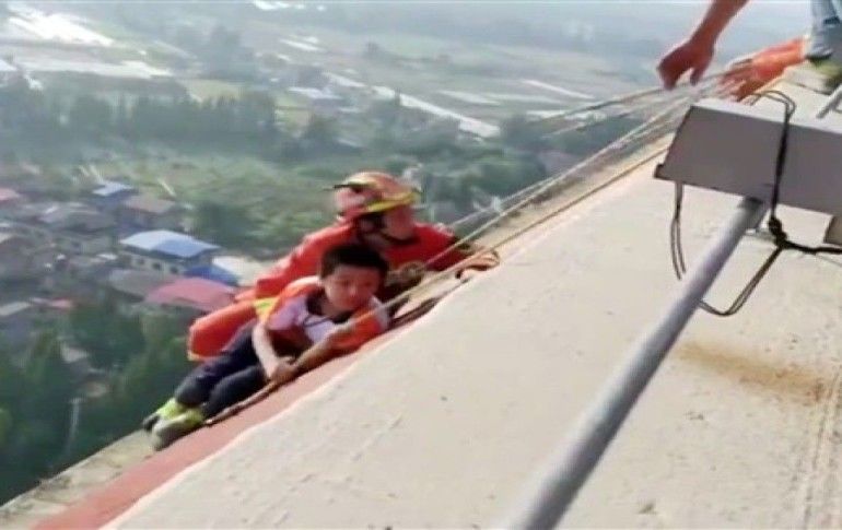 Öğrenci binanın çatısının uç kısmında otururken çatıya çıkan itfaiyeciler öğrenciyle konuşarak ikna etmeye çalıştı.
