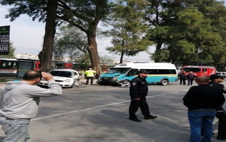 Kaza, saat 12.30’da Bornova Üniversite Caddesi üzerindeki DSİ’nin önünde meydana geldi. İddiaya göre, Rafet Erhan (36) idaresindeki 45 HC 755 plakalı otomobil, sağ şeritten seyrettiği sırada sol tarafa dönüş yapmak istedi. Bu sırada Bornova-Altındağ seferini yapan 35 M 8501 plakalı hatlı minibüs duramayarak otomobile çarptı. Çarpmanın şiddetiyle yaklaşık 30 metre sürüklenen araçlar, yol kenarındaki ağaca çarparak güçlükle durabildi.