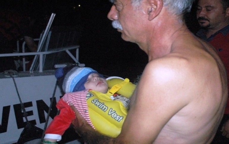 Muğla’nın Bodrum ilçesinden Yunanistan’ın Kos Adası’na gitmek isterken botları su alan bir grup mülteci, sahil güvenlik tarafından son anda kurtarıldı. Mültecilerden birinin kucağındaki kundağa sarılı bebek görenleri şaşırttı.