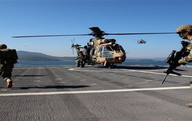 İZMİR / İHA - Akdeniz, Ege Denizi ve Karadeniz’de 103 savaş gemisinin katılımıyla eş zamanlı olarak başlatılan Mavi Vatan-2019 Tatbikatı devam ediyor. Senaryo gereği İzmir Körfezi'ndeki düşman ülkeye ait senaryo gereği “Hekimli Adası” ismiyle anılan adaya amfibi çıkarması yapacak olan kuvvetler, sınıfında dünyanın en büyük gemisi olan ve yerli imkanlarla üretilen TCG Bayraktar ile sabahın ilk ışıklarıyla birlikte adaya yaklaştı.