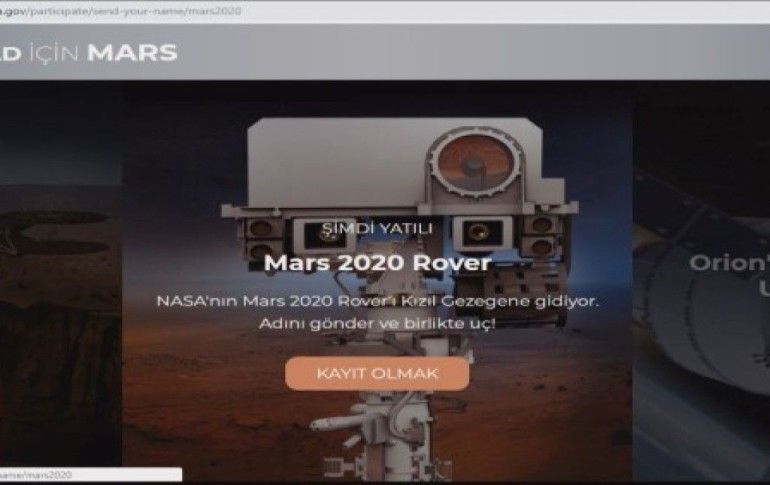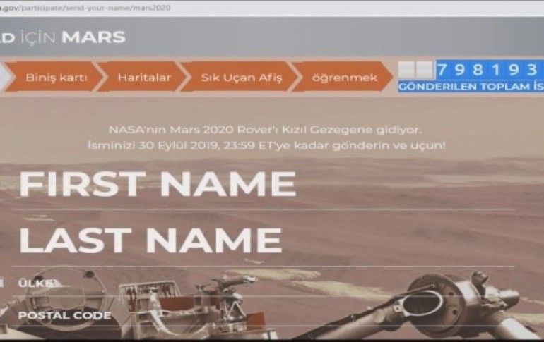 NASA'nın 2020'deki Mars görevi için başlattığı 'İsmini Mars'a Gönder' kampanyasına dünya genelinde yaklaşık 8 milyon kişi katıldı. Türkiye ise dünya genelinde ismini marsa göndermek isteyen ülkeler sıralamasında 2,5 milyon kişi ile birinciliğini sürdürüyor.