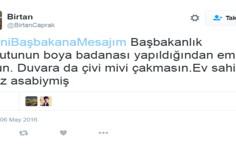 - Twitter'da başlatılan #YeniBaşbakanaMesajım başlığı ile sosyal medya kullanıcıları mesajlarını ve isteklerini yazıyorlar.