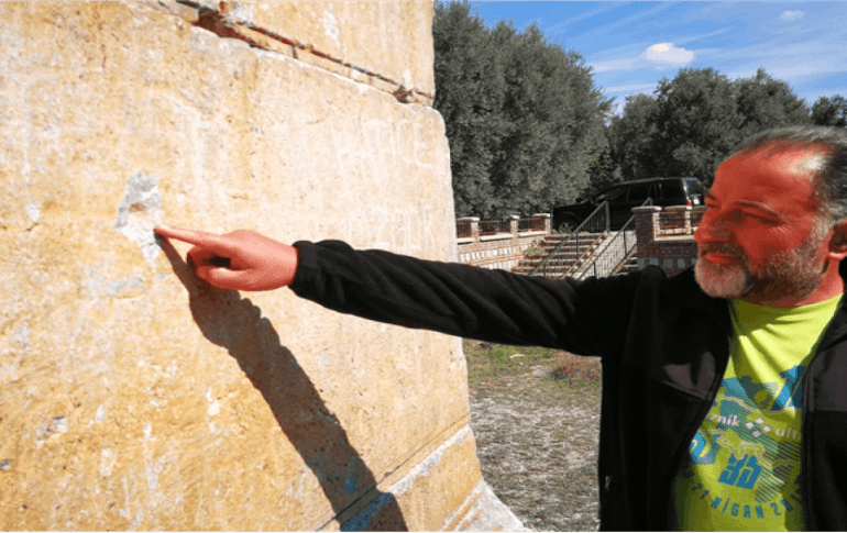 Üst üste dizilmiş beş farklı taştan oluşan 12 metre yüksekliğindeki tarihi eserin bazı kısımlarında 7 adet kurşun deliğinin olduğu görüldü. Anıtı ziyarete gelenler gördükleri karşısında üzüldüklerini ifade ederek,