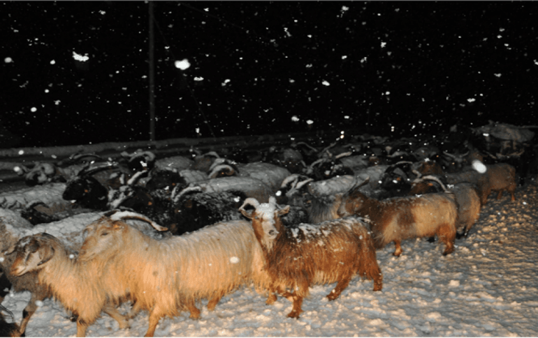 Hakkari’nin Yüksekova ilçesinde eve dönüş yolunda kar ve tipiye yakalanan 300 küçükbaş hayvan, 6 saatin sonunda ağıllara ulaştırıldı.