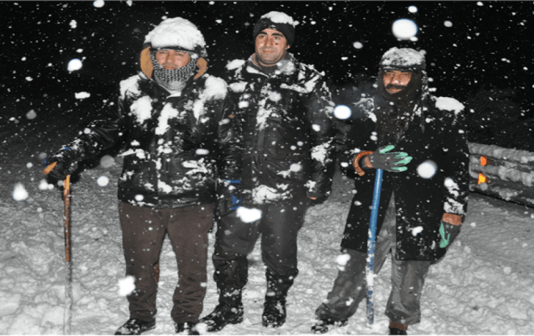 Yolda kar ve tipiye yakalanan Yalın ile beraberindekiler, zorlu yolcuğun ardından beldeye 6 saat sonra ulaşabildi.