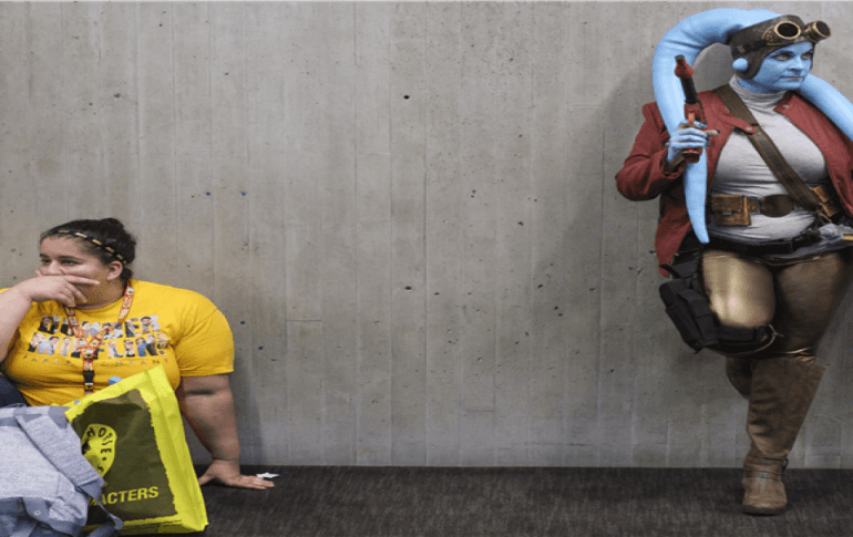 4 4 Birçok etkinlik ve panellerin düzenlendiği fuarda, ziyaretçilerin ünlü film karakterlerinin kostümlerini giymesi de dikkat çekiyor.