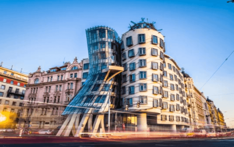 Çekya'nın başkenti Prag'da Vlatava Nehri kıyısında yer alan ve 'Dans Eden Ev' olarak adlandırılan binanın yapımı 4 yıl sürdü. Mimarlar Milunic ve Gehry tarafından inşa edilen bu binanın tarzı, sanat ve mimarlık çevreleri tarafından "yeni barok" olarak nitelendiriliyor.