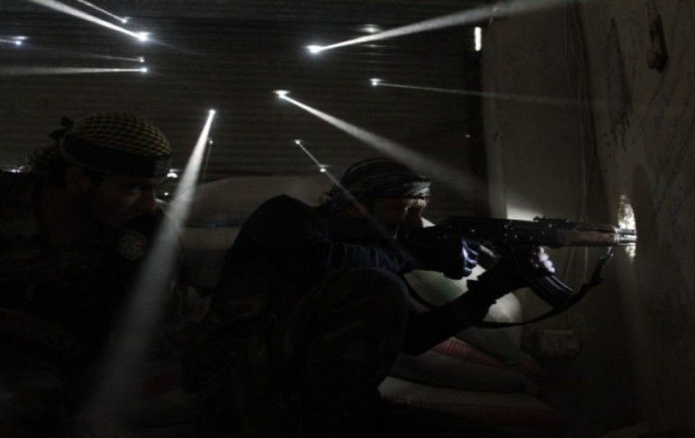 (En iyi fotoğraf) Javier Manzaro AFP: Suriye’de iki keskin nişancı delik deşik duvarın arkasında ateş ederken..