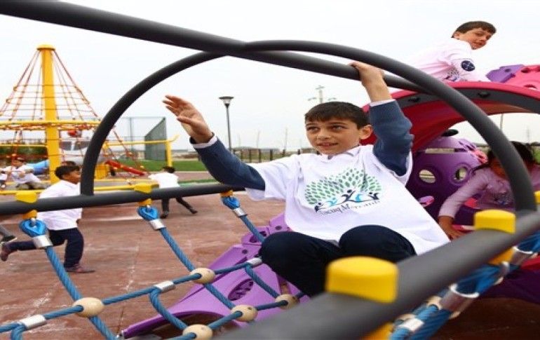 Açılışın ardından köy çocukları oyun alanına girerek doyasıya eğlendi. Özoral ve Memmedov, çocuklarla hatıra fotoğrafı çektirdi.