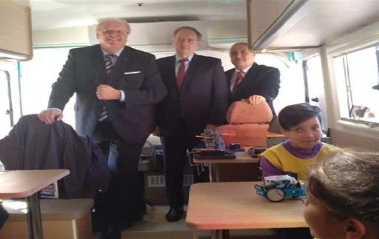 İki büyükelçi çocuklarla robotik kodlama atölyelerinde STEM eğitimine destek vermek için atölye çalışması yaptılar. Avrupa ve Türkiye’nin uzun yıllardan beri eğitim alanında işbirliği yaptığını vurgulayan AB, Türkiye Büyükelçisi Christian Berger, bundan sonra da devam edeceğini dile getirdi. Büyükelçi Berger, "Bu çok pratik bir faaliyet. Çocukları tasarlamaya, üretmeye ve bir şeyleri hayal etmeye teşvik ediyor. Biz bilim karavanı konusunda Almanya Hükümetiyle birlikte çalışıyoruz. Bu şekilde çocukların teknoloji, mühendislik ve matematik konusunda ilgilerini uyandırmaya çalışıyoruz. Fakat sadece eğitim alanında değil, işin aynı zamanda eğlence yönü de var. Sınıfta oturmak yerine burada hem oyun gibi oynuyorlar hem de bir şeyler tasarlıyorlar. Dolayısıyla hem pratik açıdan hem de aynı zamanda eğlenme de var. Bilim karavanı Türkiye genelinde 20 ili ziyaret ediyor olacak. Her gittiği kentte pek çok okulu ziyaret edecek. Bu ziyaretler esnasında eğitime katkıda bulunmaya çalışacak" dedi.