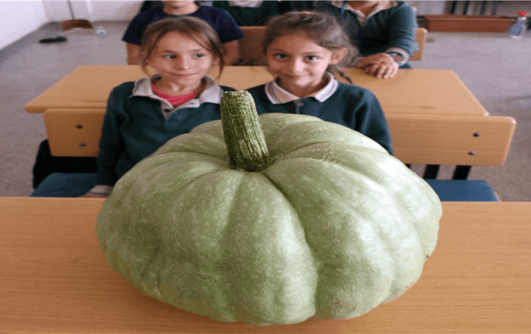 Fasulye, barbunya, kabak, biber, domates, salatalık gibi 20 çeşit ürünün yer aldığı bahçede yetişen ürünlerin en dikkat çekeni ise bal kabağı. Normal bir bal kabağından biraz daha büyük olan bal kabağı, tartıldığında 42 kilo geldi.