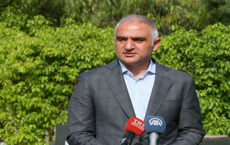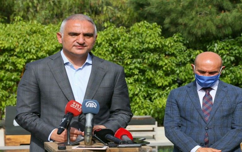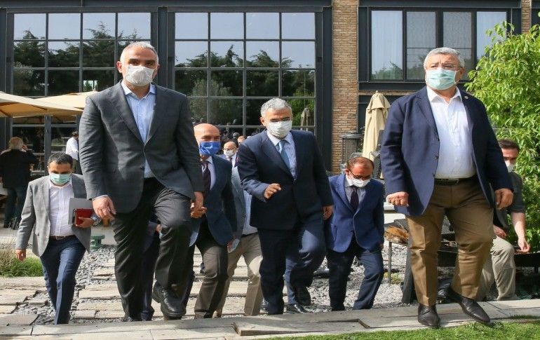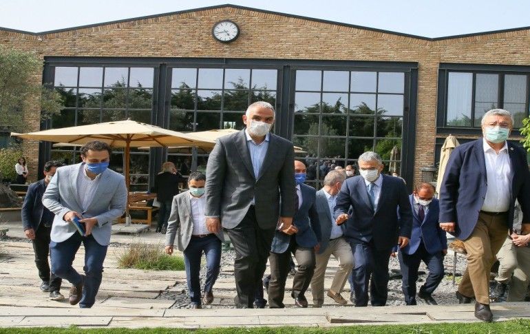 Kültür ve Turizm Bakanı Mehmet Nuri Ersoy (ortada), İzmir'in Çeşme ilçesinde düzenlenen Ege Turizm Planı kapsamındaki "Çeşme Projesi Değerlendirme Toplantısı"na katıldı.