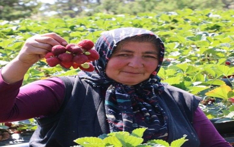 KAHRAMANMARAŞ / İHA - Kahramanmaraş’ın Türkoğlu İlçesi Murat Çakıroğlu ve Kaledibi mahallelerinin arasında yer alan çilek tarlası hasat gününde konuşan Bozkurt, Kahramanmaraş’ta resmi kayıtlara göre 2 bin 700 dönüm çilek tarlasının bulunduğunu söyledi.