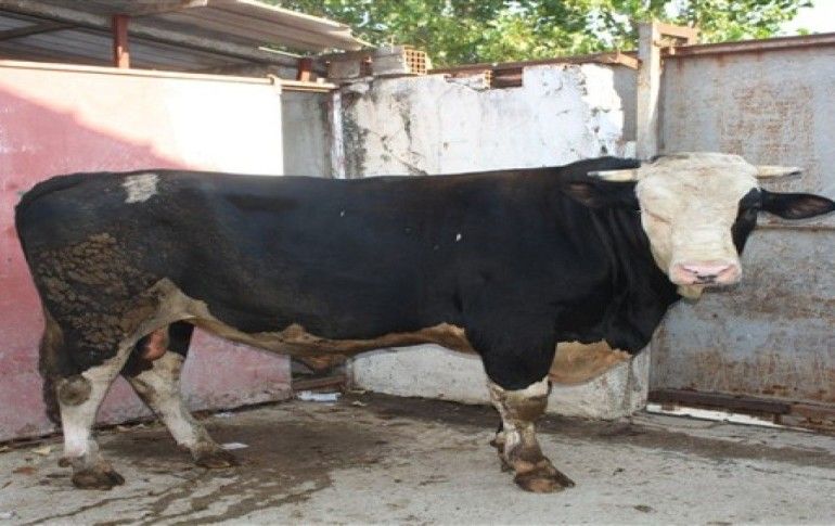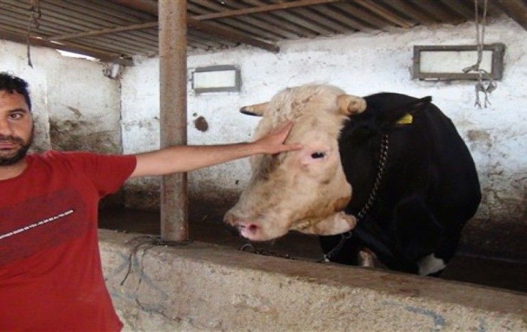 Manavgat Demirciler Mahallesi Ulualan mevkiinde Halil Şekerlisoy’a ait besihanede yetiştirilen simental cinsi 1.3 tonluk 'Paşa' isimli boğa Kurban Bayramı öncesinde 25 bin liradan satışa çıkarıldı.