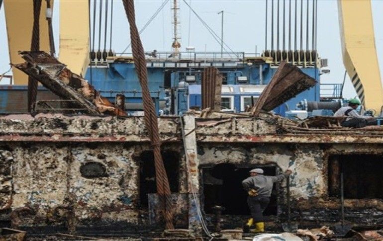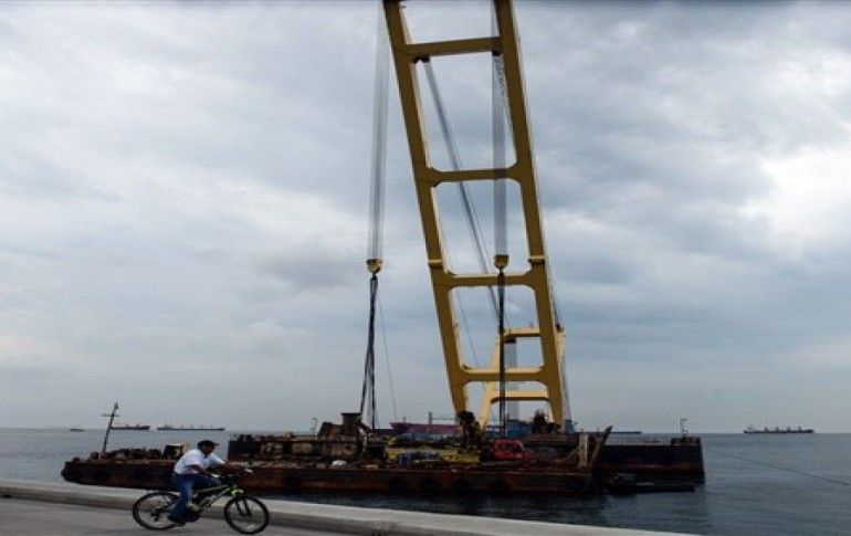 Su altında belirli kısımları kesilen batık gemiyi vinç parçalar halinde kaldırıyor. Küçük kısımları gemilere yüklenip götürülüyor. Geminin su üzerinde gözüken kısmı da yerinden sökülerek sahilin kenarına getirildi.