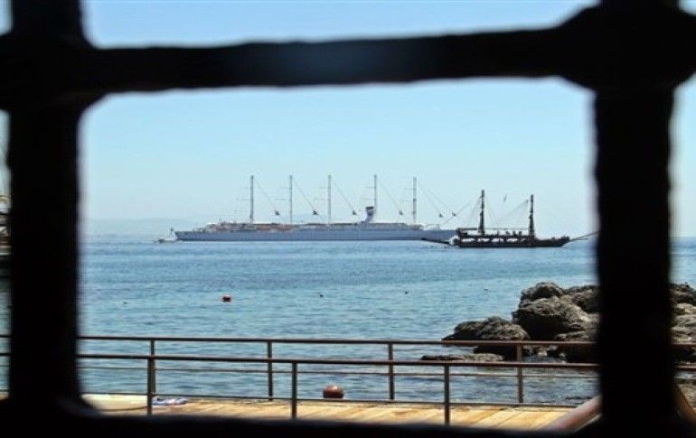 Kos adasından demir alan Dünya’nın en büyük yelkenlisi ve dünyanın tek 5 direkli yolcu gemisi olma özelliği taşıyan Fransız bandıralı 'Club Med 2'isimli kruvaziyer, yaklaşık 5 yılın ardından tekrar sabah saat saatlerinde 253 mürettebat ve çoğunluğu Fransız 291 yolcusuyla demir attı.