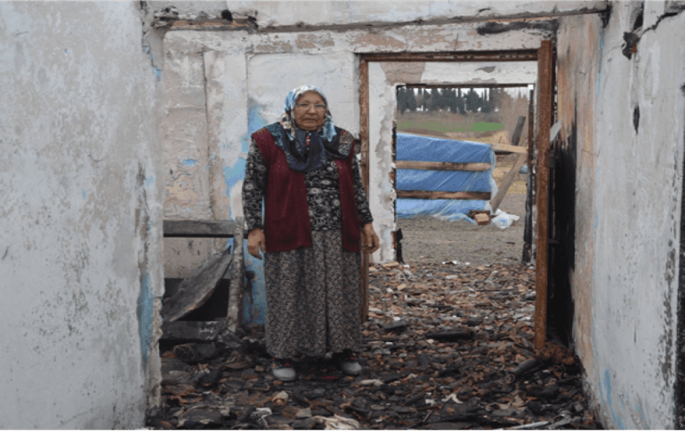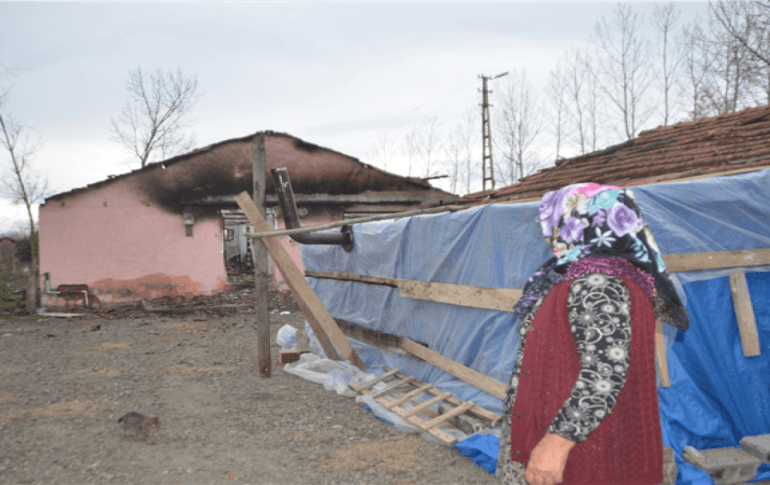 15 gün önce elektrik kontağından çıkan yangın sonucunda tek katlı evi tamamen yanan ve kullanılamaz hale gelen 67 yaşındaki Pakize Çödel, ahırın yanına yaptığı naylon kaplı çadır içerisinde kızı ve torunu ile birlikte yaşam mücadelesi veriyor. 4 yıl önce damadının hayatını kaybetmesi sonucu kızı ve torunu ile birlikte yaşayan Pakize Çödel, 27 yıl önce ölen eşinden aldığı bin 200 lira aylık ve ahırda bulunan 2 ineği ile geçimlerini sağlıyor.