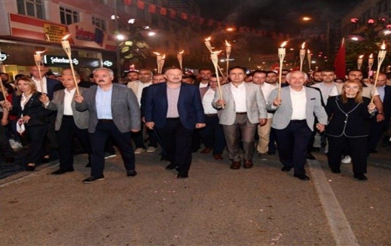 ISPARTA / İHA - Isparta Belediyesi’nce, belediye önünden başlatılan fener alayına Isparta Valisi Ömer Seymenoğlu, AK Parti Isparta Milletvekili Recep Özel, Garnizon Komutanı Piyade Albay Bilgin Çetinbağ, Belediye Başkanı Şükrü Başdeğirmen, Cumhuriyet Başsavcısı Mustafa Kemal Çokdinç, Jandarma Komutanı Jandarma Albay Mustafa Özdurhan, AK Parti İl Başkanı Osman Zabun, Merkez İlçe Başkanı Ömer Parlak, ITSO Başkanı Mustafa Tutar başta olmak üzere sivil toplum kuruluşu temsilcileri, muhtarlar, askeri ve sivil erkan ile binlerce vatandaş katıldı.