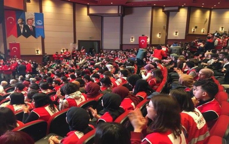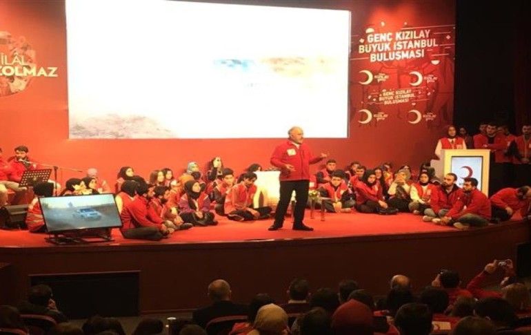 Sohbet havasında devam eden programda konuşan Kızılay Genel Başkanı Dr. Kerem Kınık,”Bu salonu böyle görmek sizi böyle heyecanlı görmek kırmızılarınızı giyip gelmişsiniz sizi kırmızılar içinde görmek hayatta aldığım en güzel hediyelerden bir tanesi çok teşekkür ediyorum. Bu hareket, bu kırmızı hareket, bu iyilik hareketi tam 152 yıldır kesintisiz, savaşta, depremde, kıtlıkta her türlü olağanüstü durumda yoluna devam etmiş büyük bir hareket. Bu hareketin 2020 yılındaki güç veren insanları destek veren insanları yöneticiler sizlersiniz” diye konuştu.