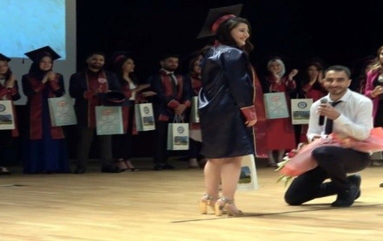 Sivas Cumhuriyet Üniversitesi Eğitim Fakültesi mezuniyet töreni ilginç bir evlenme teklifine ev sahipliği yaptı.