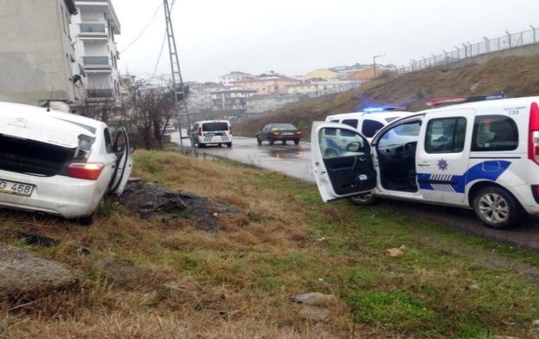 Kaçmaya devam edem şüphelilerin aracı kontrolden çıkarak yol kenarındaki arsaya fırlayarak kaza yaptı.
