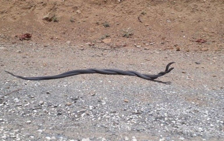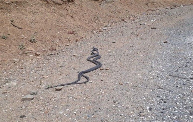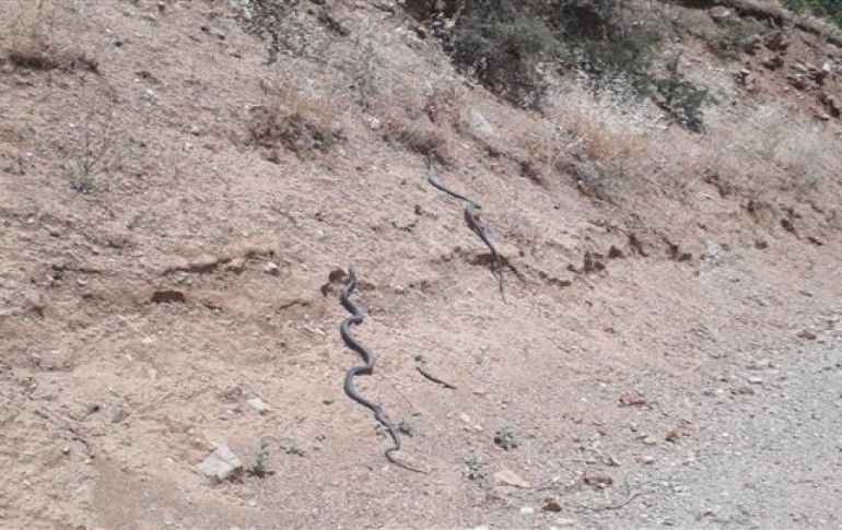 HAKKARİ / İHA - İlçe merkezine bağlı Nehri köyü yolunda boyları bir metreyi geçen iki yılanın dansı görüntülere yansıdı.