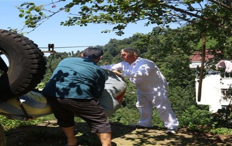 Rize’de halk coğrafi şartların zorluğuna ilkel yöntemlerle çözüm buluyor. Merkeze bağlı Taşpınar köyünde yolu olmayan çay bahçesine teleferikle ulaşım sağlanıyor. Yürüyerek 25 dakikada çıkılan çay bahçesine Mehmet Taşpınar isimli vatandaş ilkel teleferik ile gidip geliyor.