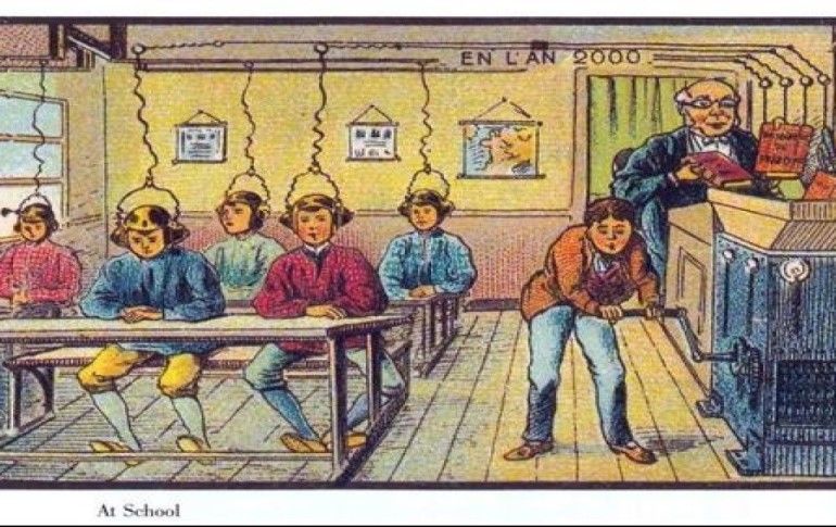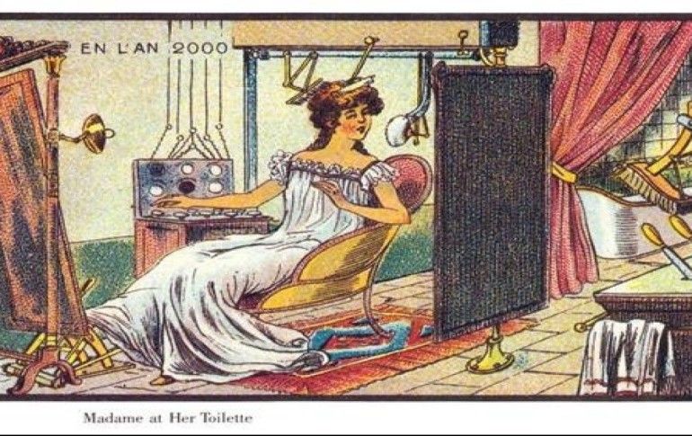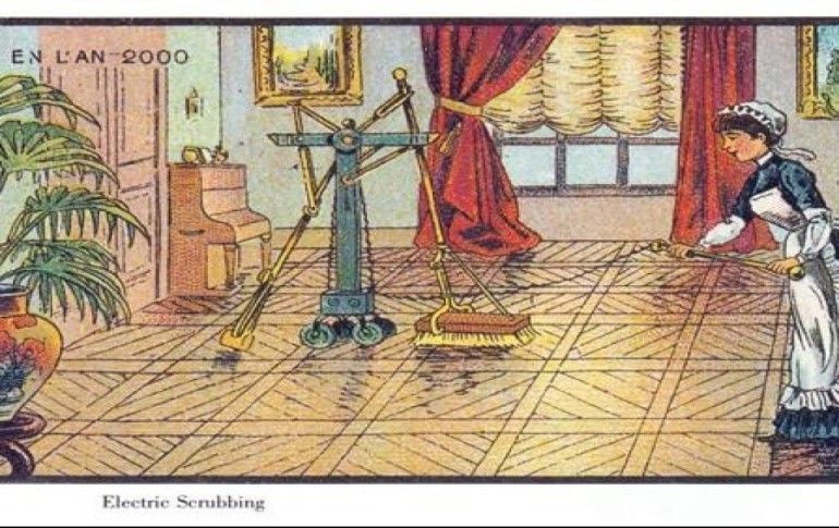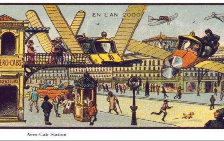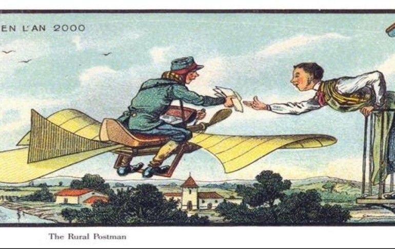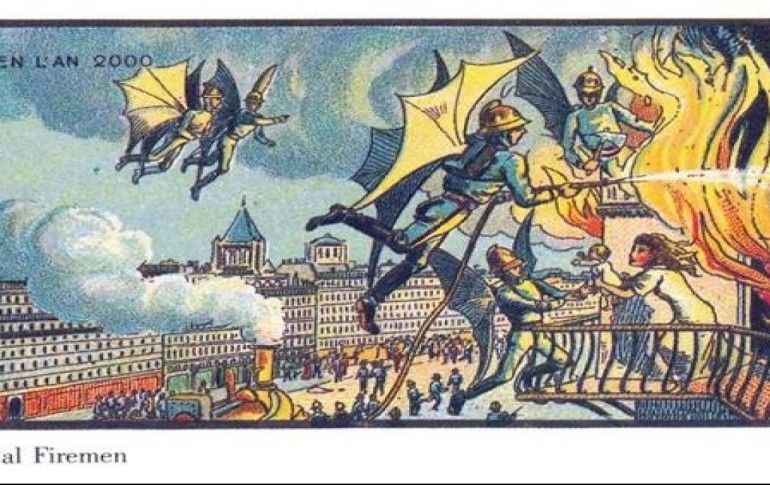 19. Yüzyılın en büyük problemlerinden biri olan yangına çözüm olarak uçan itfaiyeciler hayal edilmiş.