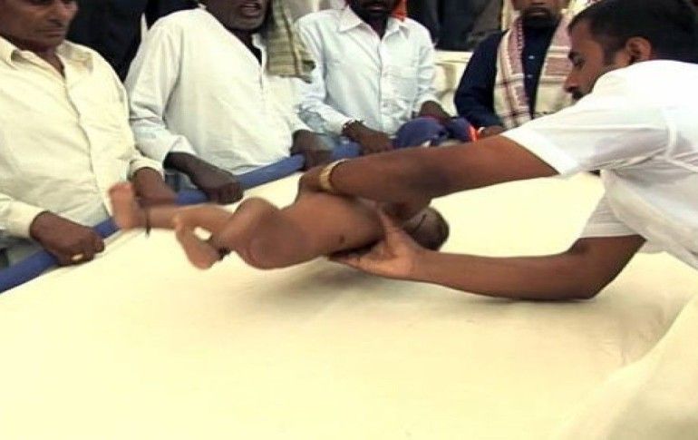 Hindistan'ın batısındaki Solapur kentinde yaşayan Müslümanların uyguladığı inanca göre bebekler tapınakların yüksek bölümlerinden aşağı atılıyor. Bu törenin çocukları güçlendirdiğine ve onlara şans getirdiğine inanan Hintliler, bebekler 9 ile 11 aylıkken onları tapınağın tepesinden atıyor. Bebekler yaklaşık 15 metre yükseklikten aşağıda bekleyen insanların tuttuğu çarşafın üzerine atılıyor.