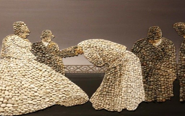 Ben de çakıl taşlarını suyun içinde görünce onlarla resim yapmayı düşündüm. Malzeme olarak kendime çakıl taşlarını seçtim. Ve boya olarak kullanmaya başladım' diye konuştu.