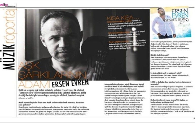 - Senden Sonra albümündeki aşk şarkıları dillere düşen Ersen Evren, gördüğü ilgiye rağmen üreten insanın karakterinin değişmeyeceğini söyledi.