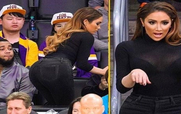 Özellikle erkek seyircilerin bakışlarına hedef olan Nikki Muddaris adeta maçın önüne geçti.